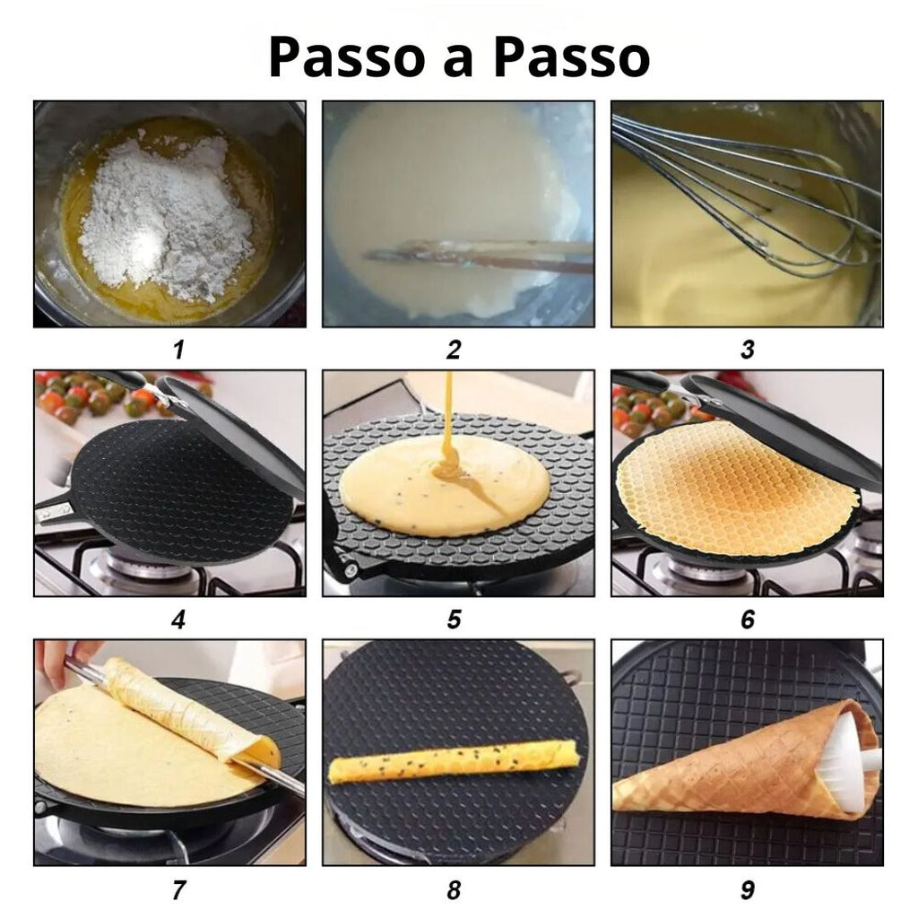 - Versatilidade Total: Perfeita para preparar waffles crocantes, cones de sorvete caseiros, omeletes e bolinhos com facilidade – tudo com um único utensílio.