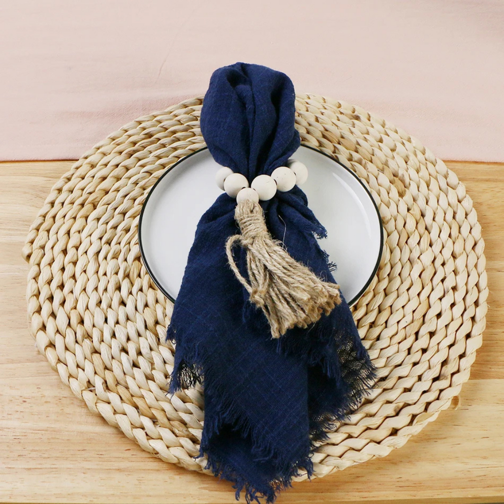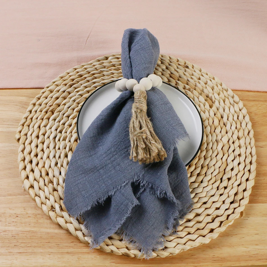 Feitos com tecido gaze 100% algodão, os guardanapos combinam leveza, durabilidade e um visual encantador. O design em estilo retrô e acabamento sem rebarbas conferem um charme natural à decoração da mesa — ideal para eventos rústicos ou minimalistas.