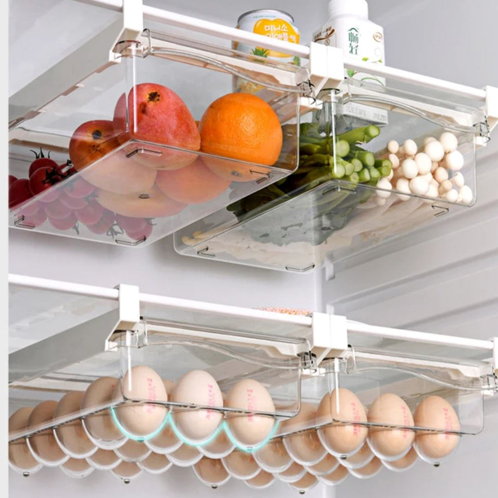 - Aproveitamento Máximo do Espaço: Instale sob a prateleira e crie uma gaveta extra para frutas, frios, queijos, ovos ou snacks.