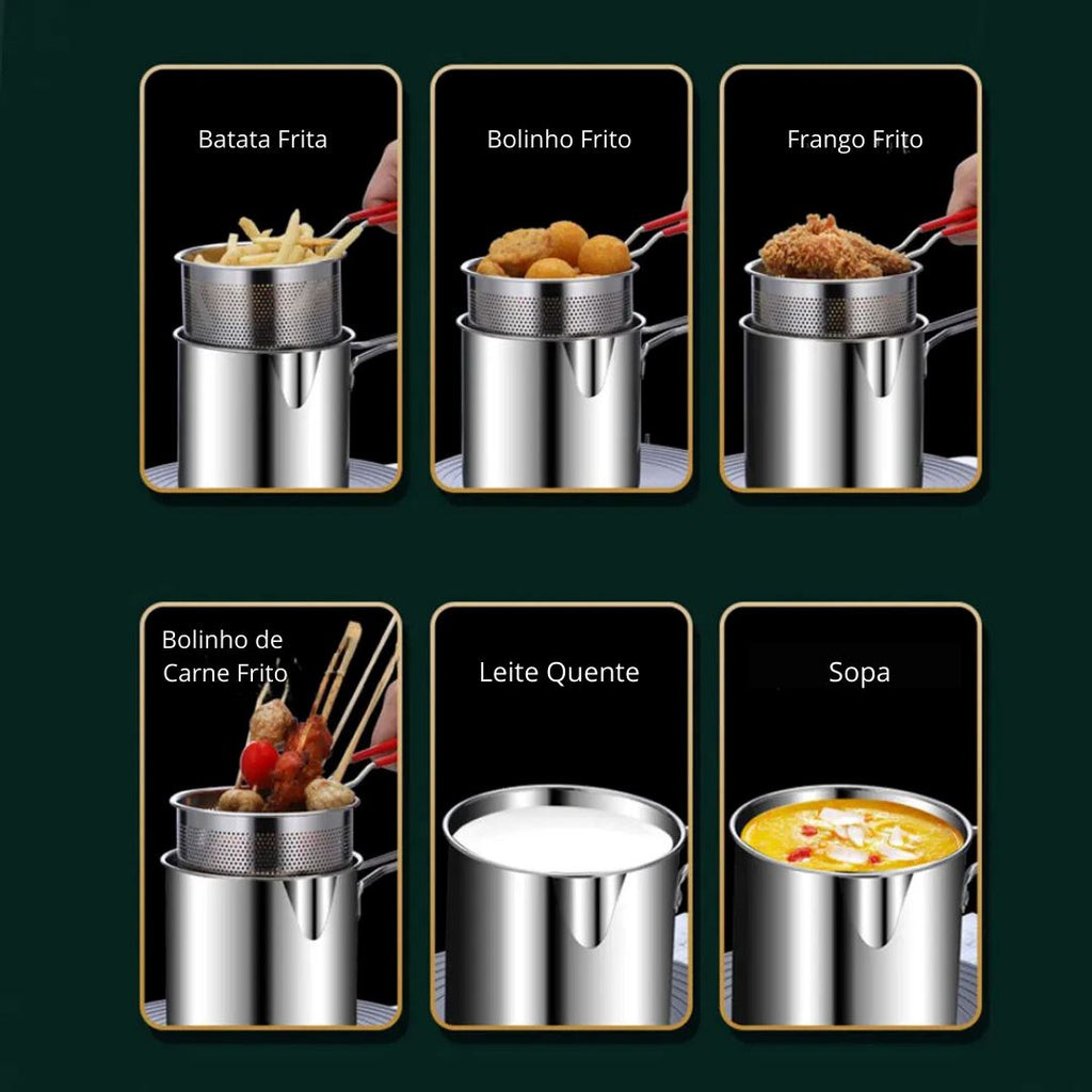 Deixe suas frituras mais crocantes, práticas e seguras com a Panela de Fritura em Aço Inox com Cesto da Cozinha com Estilo. Ideal para batatas, frango e muito mais, ela é a escolha perfeita para quem busca desempenho e design funcional no dia a dia.