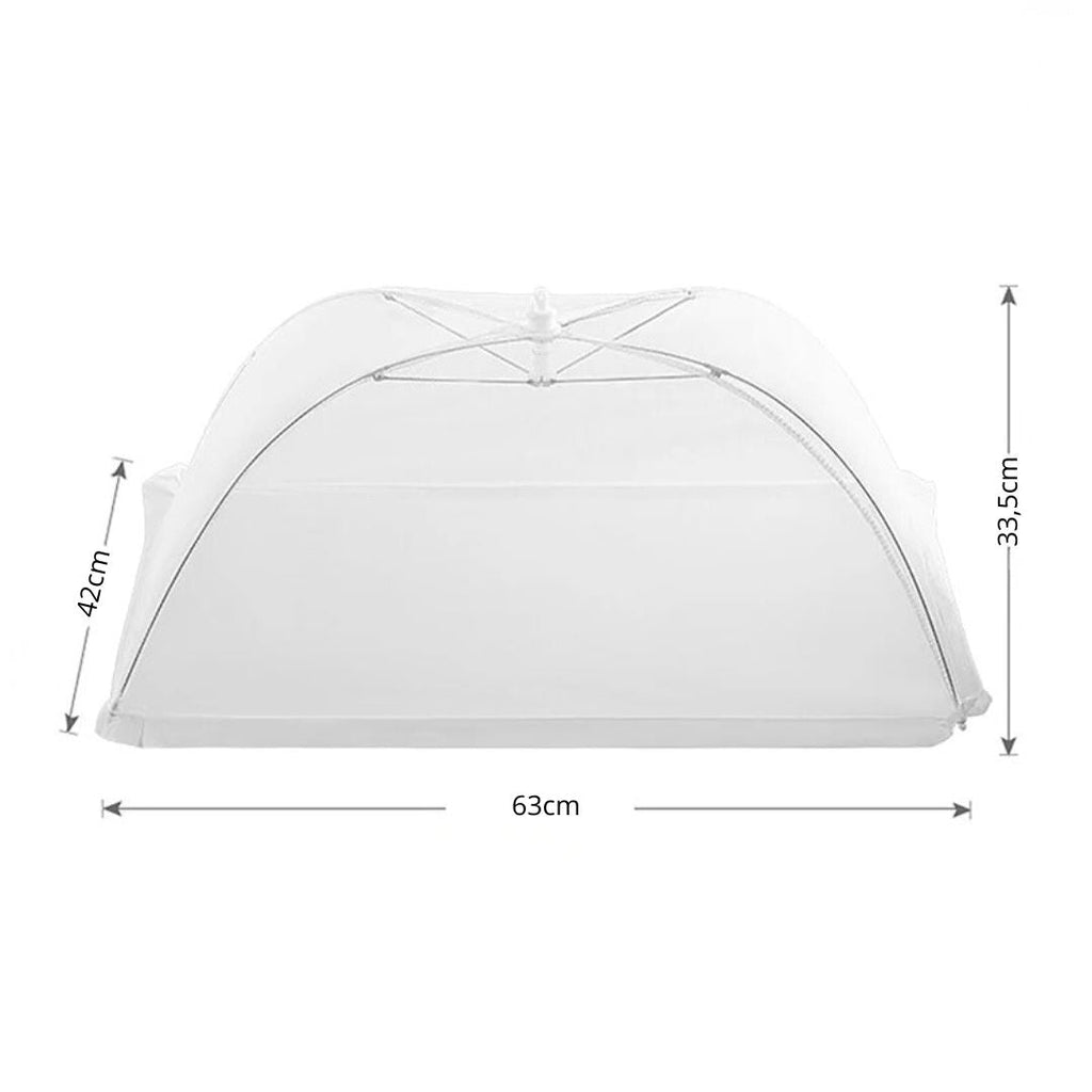 - Barreira contra insetos: malha fina evita moscas e mosquitos, mantendo seus pratos sempre limpos e seguros.